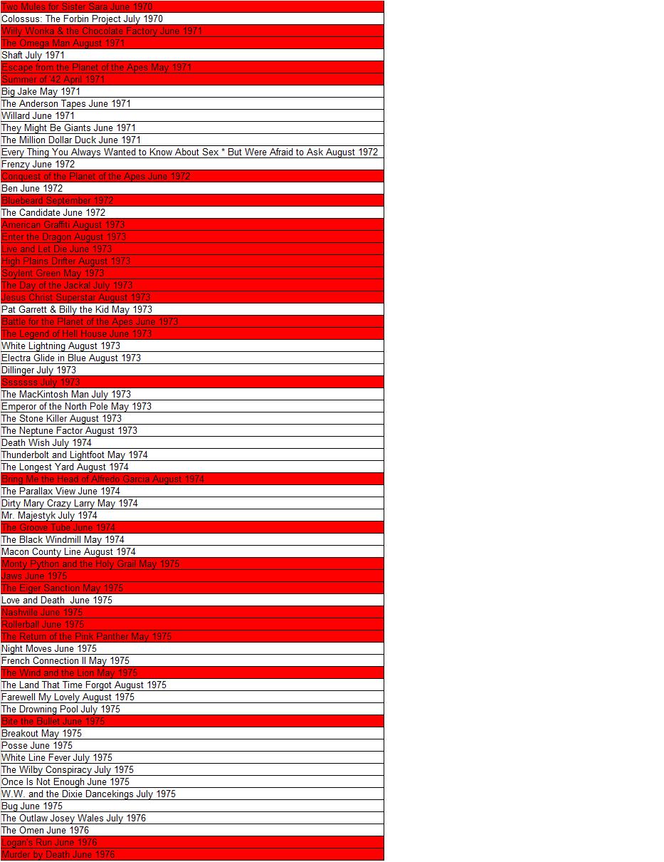Ok, we started this morning with The Kentucky Fried Movie from 1977. This feels like a movie that I would have seen with my friend Art, but I think he was in Korea at the time so it was probably something that Dee and I saw together. She looked out of the corner of her eye this morning as I watched, and she read. She said that she didn’t remember this movie as being this crude, but that is all I remembered about it. One of the reasons I thought I saw this with Art is that we both used to make fun of other movies or people by pointing out that they reminded us of one of the fake trailers in this movie “Catholic High School Girls in Trouble”. Mary Ann I’m not sure I would recommend this to you or anyone in the family (except Rick). This film is definitely nasty but also very funny. It is the first film from the Abrams, Zucker and Zucker team that later created Airplaine and the Naked Gun Movies.