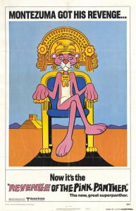 This is the last Pink Panther Movie that Peter Sellars made while he was alive. As strange as it sounds, there were actually two more films featuring Sellars, that were made after his death. There was apparently enough material from the other 1970s Panther films that they could string some bits together and try to make it into a movie. I never saw any of the “FrankenPanthers” but you can tell from this one that the formula was getting tired. “Revenge” is not a good movie and it is only a mildly entertaining one. These films were the equivalent of the Bond films for United Artists during the 1970s. There was a new one every couple of years and they made a bundle. Also, like the Bond films, they got a little tired and needed some juice. I don’t know if Peter Sellars had lived if he could have revived the series, but maybe it is a good thing that they never got the chance to disappoint us again. Take a look at the poster below to see how low they went for a joke that is not even funny. The image is not really intriguing at all and there is nothing in this that sells the movie and it’s ideas or story. It is just a title.