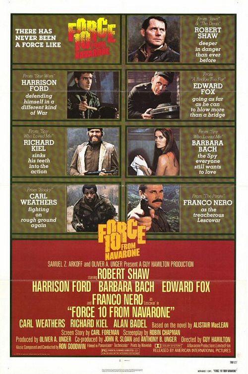 Force 10 From Navarone is supposed to be a sequel to the Guns of Navarone which was made 17 years earlier. there is a brief two minute intro that summarizes the goal of the commando unit in taking out the guns and then puts two of our actors into the scenario. I could not remember if their characters had the same names as Gregory Peck and David Niven, but I think that was the inference. This time the commando squad has been turned into an assassination team, on its way to eliminate a traitor that has ruined several operations in the Yugoslavian Theater of war WWII. Events bring this team together with an American sabotage mission headed by Harrison Ford’s character.
