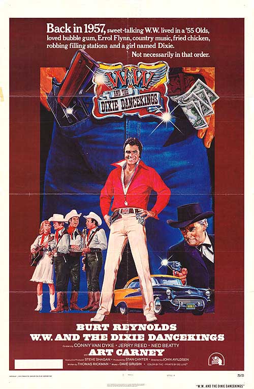 The movie is typical 1970s low budget fodder. Burt plays a good ole boy driving a fancy car, who takes a liking to a girl in a country western singing group. The movie is set in 1957, and there are some brief references to the rock and roll revolution that is taking place. The setting is the South, most of the time Nashville, because the goal of the group is to make it to the Grand Ole Opry. W.W. is a fast talking, small time crook who has managed to rob a series of gas stations without leaving much of a trace to follow. He accomplishes this by just being good natured and giving the employees a little kickback. Ultimately, it is his mode of operating that gets him and the band in trouble and high jinks occur. There are some car chases and crack ups, and a few songs by Jerry Reed and Don Williams.