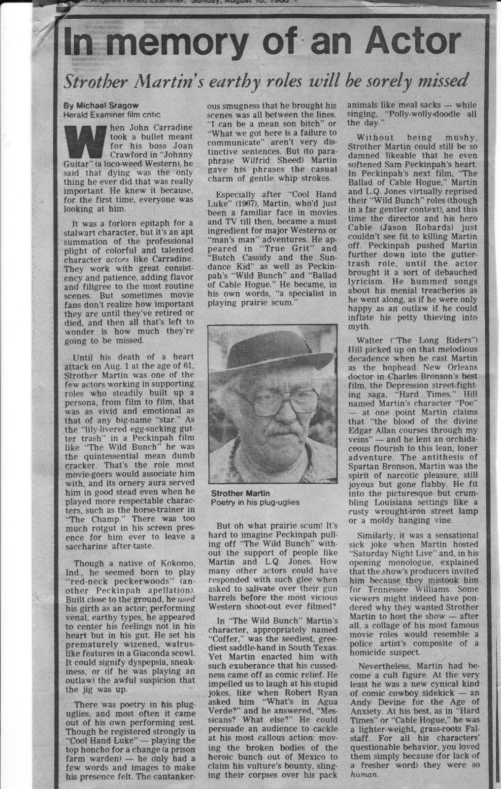 Below is an obituary from the Los Angeles Herald Examiner. Strother died the day before my wedding. He was my Mother’s cousin and we expected him at the service. She knew why he did not come, and she did not tell me because she did not want it to overshadow the day. 1980 was not like today with a twenty four hour news cycle. I did not find out until Sunday Morning in the papers when we were on our honeymoon. This article was one of the ones my mother saved.