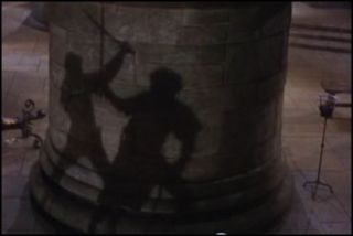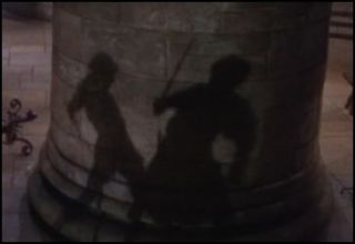 The duel is imaginatively shot and paced very effectively. Each man gets the upper hand at different points and the locations of the combat change throughout. Of course the war of words continues as well. Robin consistently gets the better of Sir Guy with the one upsmanship dialogue.There is a terrific bit of business where the two combatants vanish from the frame but the duel continues in front of our eyes, magnified against a pillar wall in shadow. It is quite imaginative and effective as a moment of pure movie joy in this dramatic climax that we are witnessing.