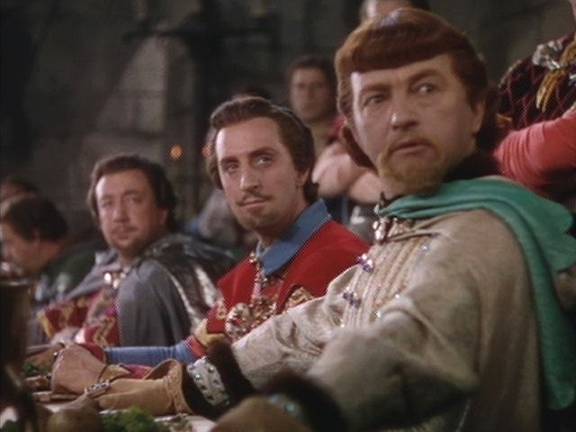 The story of swashbuckling adventure in outer space that opened in 1977 heavily borrowed from the past and a simple comparison of the story cards reveals how similar they are. The film quickly establishes the characters of Robin and Sir Guy as adversaries. The plot to place John on the throne is hinted at in a banquet where the Norman barons are gathered. It is Robin himself that reveals the details. This shows that he is a sharp and observant thinker and his crashing of the feast sets the tone of jocular wordplay interspersed with daring escapes and fight scenes. This pattern is repeated several times in the story. Another pattern that comes up is the introduction of new characters through their interaction with Robin. Although the sequencing is quick, the structure might be a little repetitive, but the events are so well played and delightful that a couple of repetitions seems like a small price to pay. Ultimately, the plot comes to a boil and the outlaws manage to infiltrate the castle at Nottingham with the returned but disguised Richard, just in time to break up a coronation ceremony. Robin and Sir Guy engage in an epic duel that sets the standard for screen swordplay.