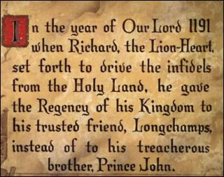 In the year of Our Lord 1191 when Richard, the Lion-Heart, set forth to drive the infidels from the Holy Land, he gave the Regency of his Kingdom to his trusted friend, Longchamps, instead of to his treacherous brother, Prince John.