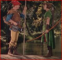 Erich Wolfgang Korngold is the composer of the music to “the Adventures of Robin Hood”. He had come from Vienna to help his friend adapt Mendelson music to a film. For four years he made a variety of contributions to the invention of film scores. He had returned to Austria to conduct an opera when the offer came to score Robin Hood. He accepted and came back to Hollywood. Right after he left the areas of Austria he lived in were annexed by Nazi Germany. He later said that the film saved his life. As a Jew he would have been targeted for the usual treatment in Nazi occupied lands. His style is clasically romantic as you can hear if you play the video clip above. After the war he returned to classical composition, but many film scholars describe his score for “The Adventures of Robin Hood” as one of the greatest film compositions ever. The strutting melody that is played when Robin crashes the barons banquet is a great example of adapting themes to scenes. The lush romantic themes for Marion and Robin’s love scenes evoke a tenderness during turbulent times that promises a better day.