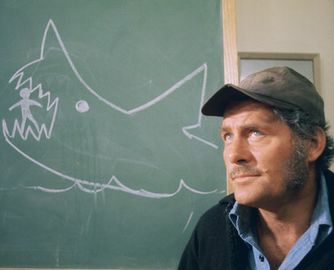 While he does pop up in one brief moment, chuckling to himself over the amateurs who think they can bring in the shark, his return to the story takes place on his ground. The business he runs is filled with stewing cauldrons of shark cartilage and homemade liquor. His self assurance is spat out at the way he mocks Richard Dreyfuss’s characters attempt to provide some credentials by mentioning the America’s Cup. Shaw’s English background helped make the flinty New England accent more realistic. His devil may care costuming impresses us with his working class manner of thinking. He is a man who knows his place in the world and is completely confident in it up to the end. Look at the body language as he surveys the equipment that Hooper is bringing aboard, he might just as well have spit.