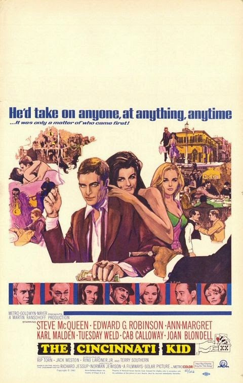 If you have not seen The Cincinnati Kid, let me recommend to you for the cool of Steve McQueen, the sensuality of Ann Margaret but especially for the seasoned wisdom of Edward G. Robinson. Robinson plays the top dog in the poker world, and he is appropriately confident, wary, and assured. Rip Torn is impossibly young in the movie and most of you won’t recognize him. The perspective that time has given me on the movie made it a very worthwhile couple of hours.