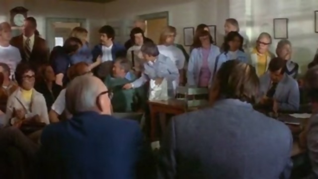 As the town selectmen announce support for closing the beaches, the Mayor tries to buy some calm with his pronouncement that the closure will only last 24 hours. The Chief says, “I never agreed to that”, but from the crowd comes the fearful response.