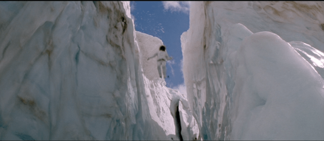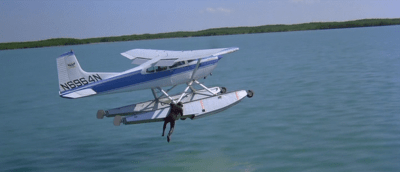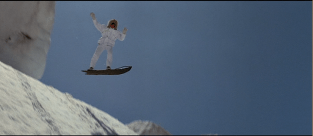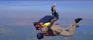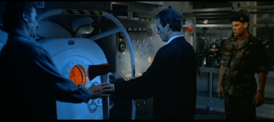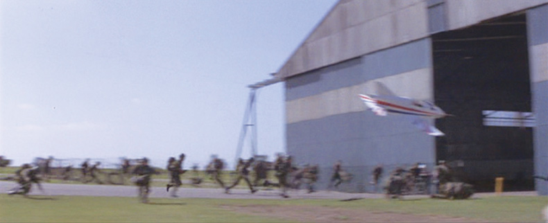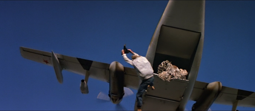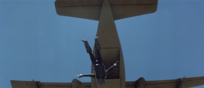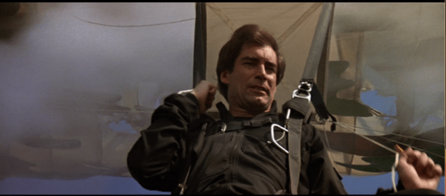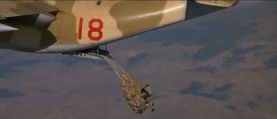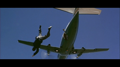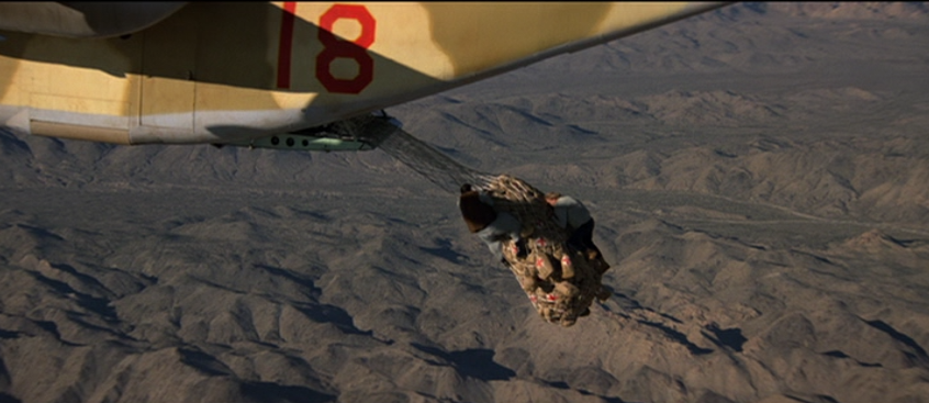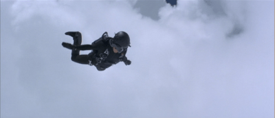 Bond gets prepped by American intelligence personnel, and we get to have some exposition of the HALO strategy. A five mile free fall in a high altitude suit at a speed above terminal velocity, and then a quick release of the chute close to the ground.