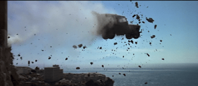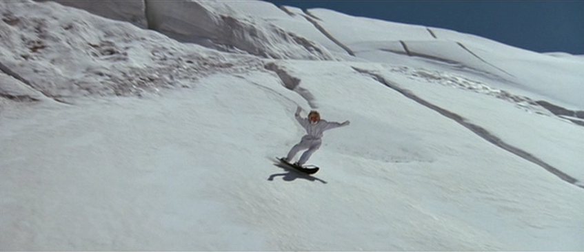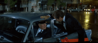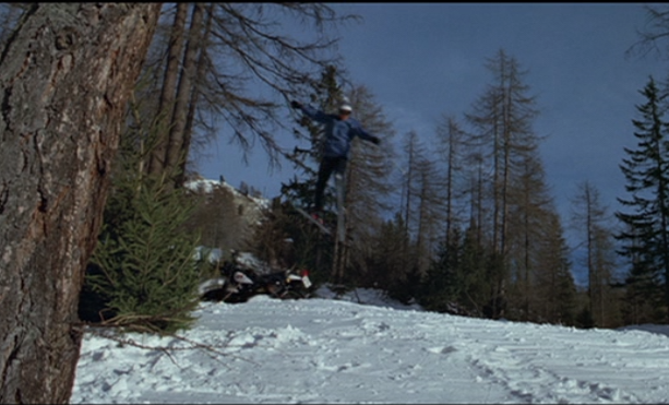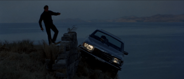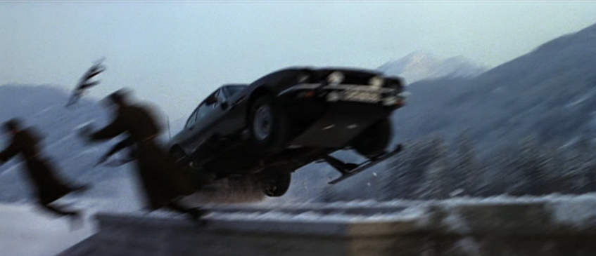 The thing that seems to give him the biggest kick though is the simple out maneuvering of the chase cars with his own vehicle. The expression on his face here reminds us that there is a funny side to Mr. Bond that is not just bad double entendres.