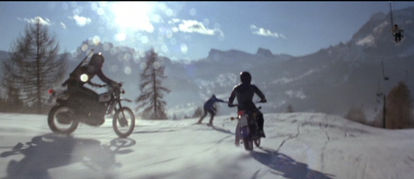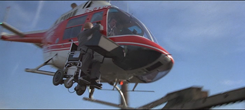 A helicopter joins the chase and the maneuverability of the motorbike suddenly loses much of it’s advantage. After all, the sky has no alleys that it has to take to follow the spies.