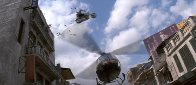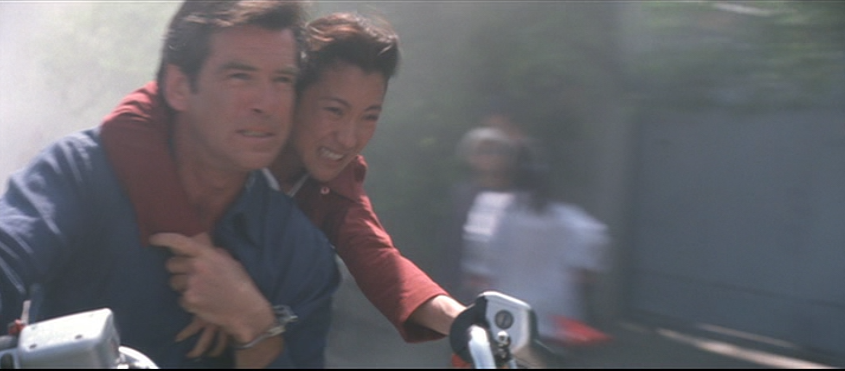 Trying to get away from carver’s minions, Bond and Wai Lin, handcuffed together, grab a motorcycle and streak through the streets of Saigon. The varius cars that chase them fall away, but only as more and more eloborate escapeds are shot.