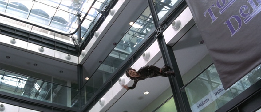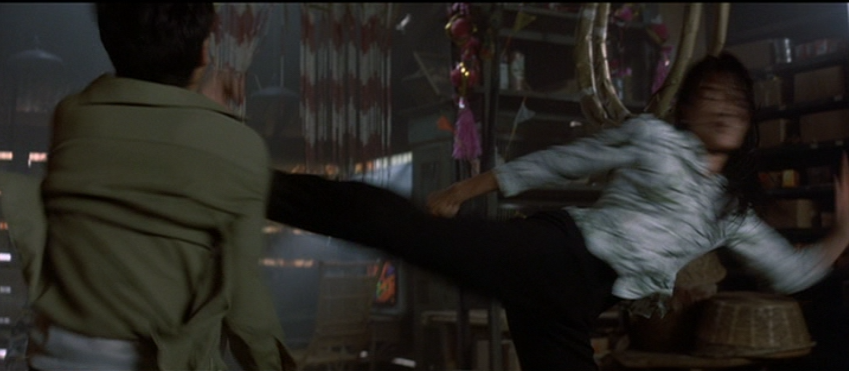 She is an accomplished Martial arts star, so naturally she gets to kick some ass. The best bit in the fight is a Jackie Chan like move where she walks up a wall, flips over her opponent and reverses their situations.