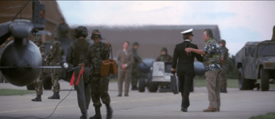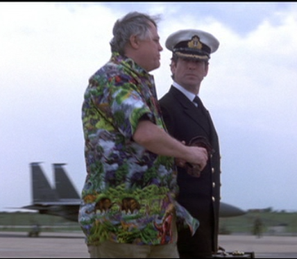 Greeting his uniformed, counterpart an American Air Base in Asia, you can see the way we Yanks are having our chains yanked. Bond id fit, with great posture and clothes. Wade is a good ole boy with a gut, an informal manner, and n Aloha shirt that would fit nicely in my collection.