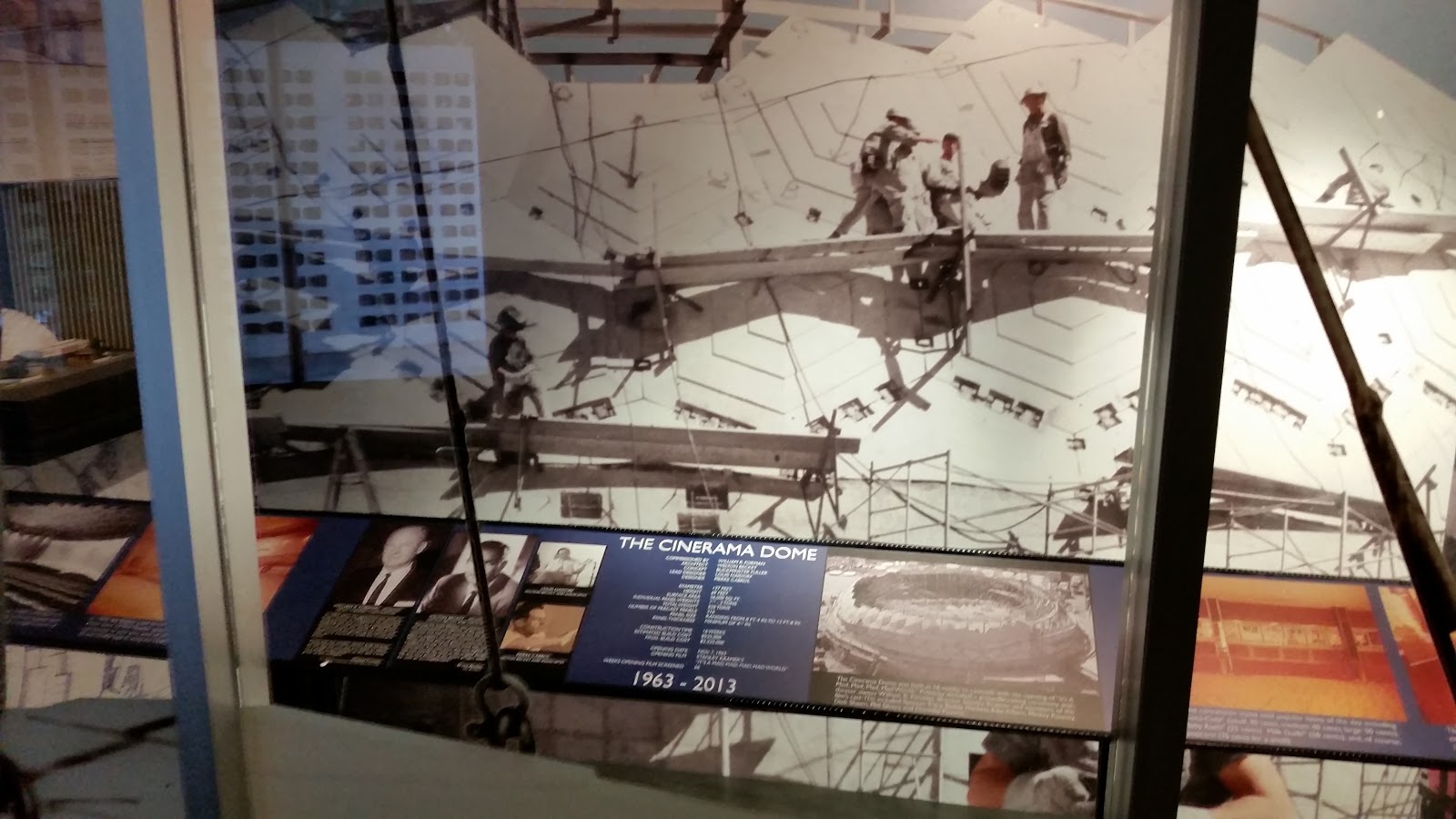 If you are not familiar with the Cinerama Dome in Hollywood, let’s just say it is unique in construction and history. The original Cinerama films made using a three camera projection technique were the prime reason the theater was built. It uses the geodesic form created by Buckminster Fuller. The shapes actually fit together and support each other without a separate framing process.