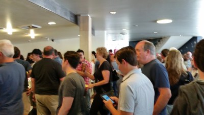 The theater can accommodate more than 800 customers and today they came pretty close to that. While not every seat was filled, the house felt packed. One easy measure of that is to take a look at the concession stand for a single screen theater. Below is a little shot for you from when I was waiting to get a drink, just about a minute before the overture started. There are at least seven lines and most of them were ten deep.