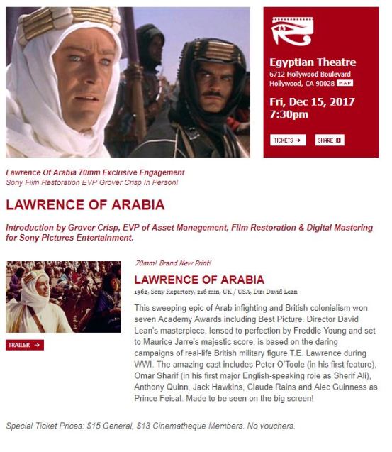 If it seems like an annual tradition to see a Lawrence of Arabia post here on the KAMAD site, well I think you are pretty perceptive. This is a film, much like “Jaws” which we will go out of our way to see on the big screen, and it so happens that Southern California audiences are hungry for Lawrence on a regular basis.