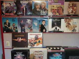 The original films on the wall sometimes were subsequently covered up by Big Sleeve Editions on contemporary films or newly acquired discs without much of a plan.