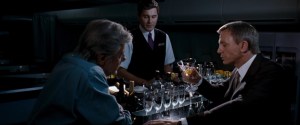 Mathis is the only companion to ever see Bond drunk, and he listens to the bitter tale of woe and advises James as a friend in spite of his temporary animus. This scene takes place in a Virgin Atlantic Skybar.