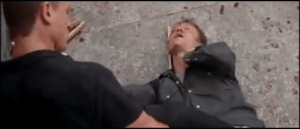 Moore had another great tough guy moment in the film when he flicks a hand off his necktie and sends a secondary bad guy to his doom by doing so. He then straightens the tie and makes a typical Moore quip.