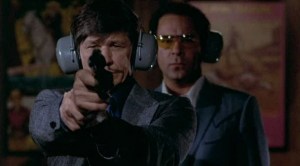 When he encounters a young man, much like himself, alienated from others with a strange sense of what is invigorating, he believes he has found an apprentice. Jan-Michael Vincent, a legitimate contender for stardom gone wrong status, plays the son of “Big Harry”. He ingratiates himself with Bishop because he senses that there is something going on behind the man’s stoic demeanor. Again, there is a long stretch of time without any action but the two characters are feeling each other out. We get more information about how isolated Bishop really is when he visits the now defunct and vanished “Marineland” and has an anxiety attack that mimics a coronary. His only human contact other than “Steve” the kid he is thinking about taking on, is a prostitute who has to invent elaborate romantic stories to satisfy him. I did especially like that Jill Ireland playing the girl has her apartment walls lined with old movie posters for films from the thirties, forties and fifties.