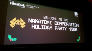 So it’s Christmas time in Southern California, which means Santa Ana Winds, Wildfires and “Die Hard”. We were accidentally invited to the Corporate Christmas party for the Nakatomi Corporation last night. The event took place at the beautiful Theater at the Ace Hotel. We had been to this venue back in the Spring for a Radiotopia event featuring “The West Wing Weekly”. Last night however was a different thing entirely, a screening of that perennial holiday classic “Die Hard“.