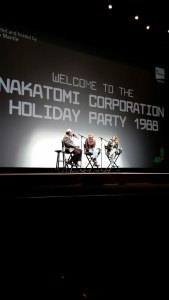 So it’s Christmas time in Southern California, which means Santa Ana Winds, Wildfires and “Die Hard”. We were accidentally invited to the Corporate Christmas party for the Nakatomi Corporation last night. The event took place at the beautiful Theater at the Ace Hotel. We had been to this venue back in the Spring for a Radiotopia event featuring “The West Wing Weekly”. Last night however was a different thing entirely, a screening of that perennial holiday classic “Die Hard“.