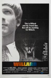 Well, it took almost 40 years. But I got to see Willard again in its original form. Shout factory and Scream have released the film in a special package which includes a DVD and Blu Ray and it has a second audio track with actor Bruce Davison. So that it is actually is a very special of presentation of the film. The only previous video releases that have been available were a VHS edition that ais long, long been out of print. There was as well a laser disc version that was all pan and scan and it is also been out of print for a long time. It has never been released on DVD before and the only dvd versions were copies of the VHS presentation. You could watch the movie on YouTube but it would be a second or third generation copy from the VHS and that’s hardly worth the effort. It’s not exactly clear why the film has been in limbo for the past 35 years, but it was definitely worth waiting for, the film is as good as I remembered and there are some things about it that are actually much better than my memory on allowed me to recall.
