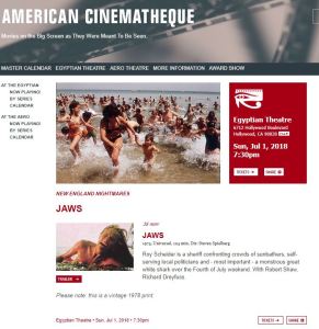 When we left the theater after Brigadoon we immediately got a new cue card and got in line to get back into the Egyptian for the most important film of our at TCM. This year is the 50th anniversary of the greatest film of the second half of the 20th century. Jaws is influential, groundbreaking, and once again in my opinion the best film that Steven Spielberg has ever made.
