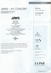 Every year we manage to cross paths with some special screening of our favorite film, the Spielberg Masterpiece “Jaws”. I’ve managed to see this movie on the big screen dozens of times and I never tire of it. Last night was another example of finding a special way to celebrate the film. This was “Jaws in Concert”, but not only are we getting a live orchestral accompaniment, we are getting it in the most beautiful setting imaginable, The Hollywood Bowl on a summer night.