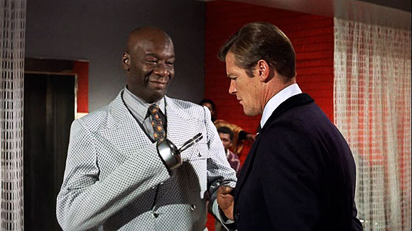One of the themes that was kept from the original story was the way Mr. Big controls a lot of his followers through the superstitions around Voodoo. Bond’s treacherous partner Rosie, freaks out at the hat with the chicken feathers, Bond trails his suspect “Whisper” to a retail outlet specializing in the occult, and on the island that Kanaga controls, his enemies are murdered in a voodoo ritual featuring the King of the Dead Baron Samedi himself, sometimes a nightclub performer, sometimes a robot and sometimes an actual specter of doom.
