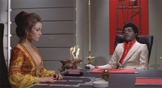 Solitaire, the Bond Girl of the film, played by the beautiful Jane Seymour, reads the future for Mr. Big and Dr. Kananga. The voice over while Bond is traveling to the U.S. is full of foreboding fun.
