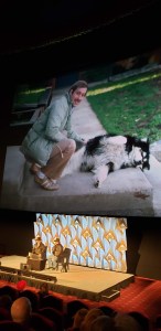 We went into our seats in the theater, loaded down with the popcorn and soda that comes with the celebration of opening night. I did a quick little Facetime video while we awaited the start of the proceedings.