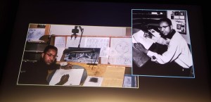 One of the animation directors also joined the conversation and displayed a cartoon he drew while waiting and then a series of rough sketches, as would have been used to storyboard the cartoon shorts.